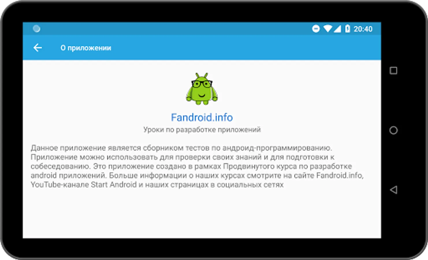 More information about our courses look at Fandroid.info site, YouTube-channel "Start Android" and our pages on social networks.