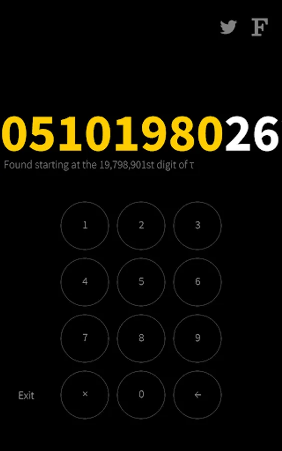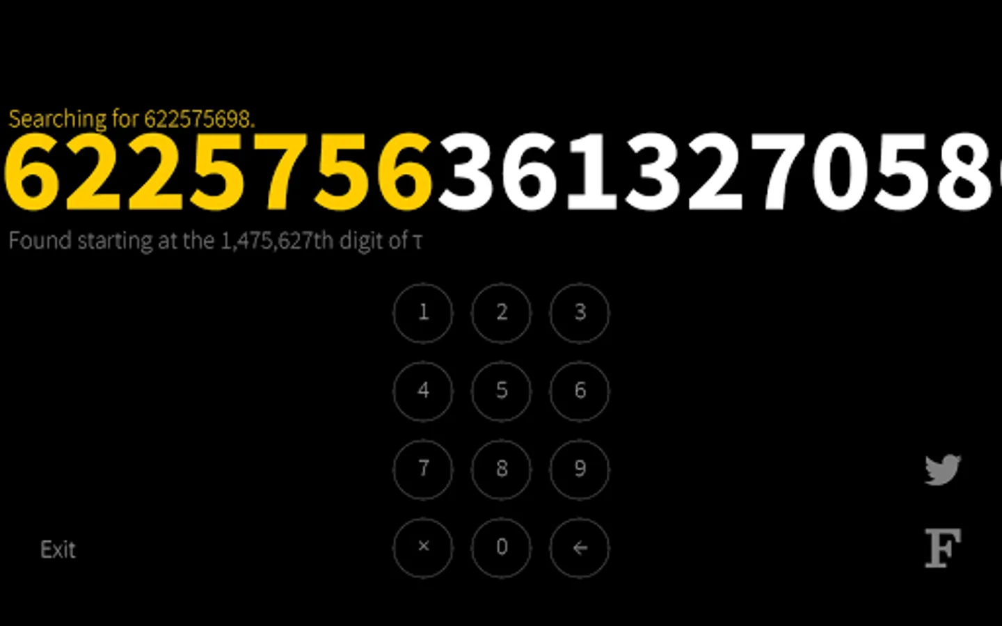 Half tau months after the initial release of Peek in Pi, we are excited to present you with Peep in Tau. It’s a new turn on our celebrated app, but instead lets you search for any number in the digits of τ, or as other people may refer to it, 2π...