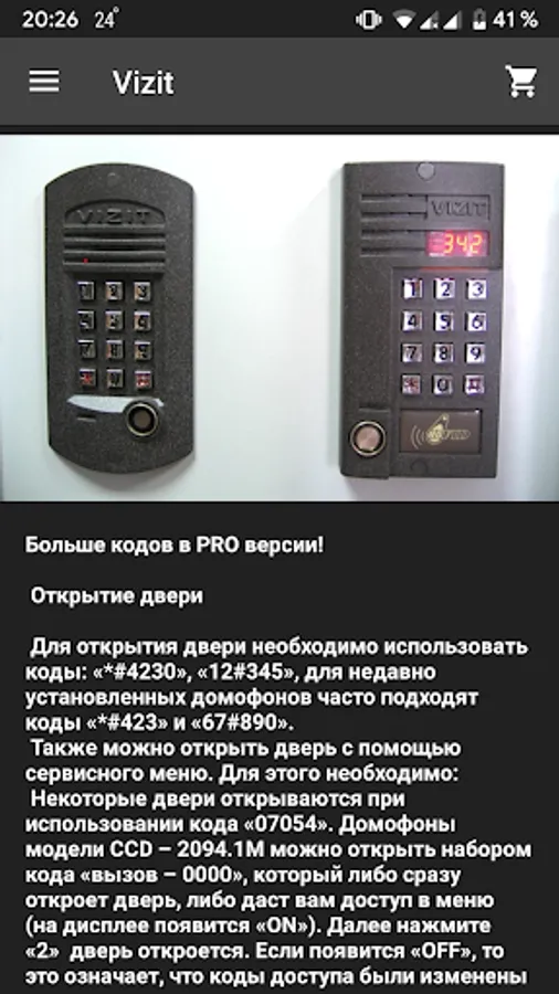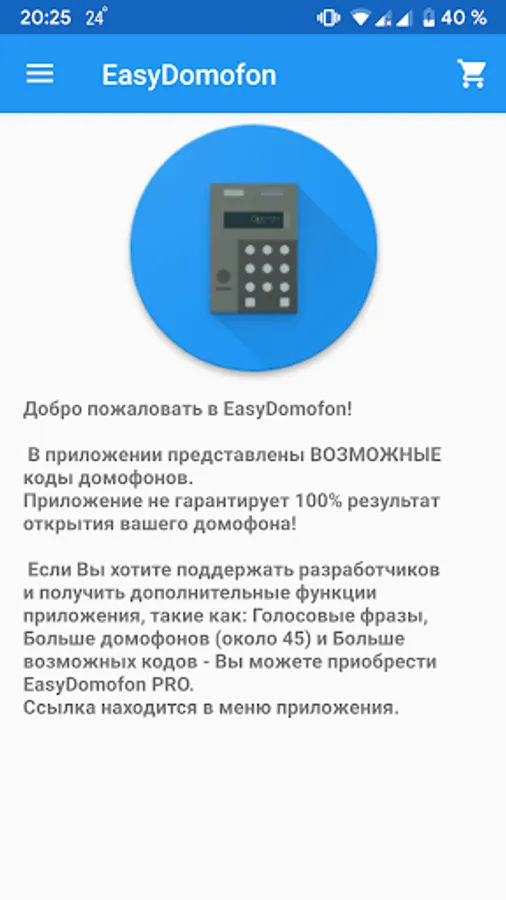 EasyDomofon - offline application to view possible ways to open doorphones without keys.
