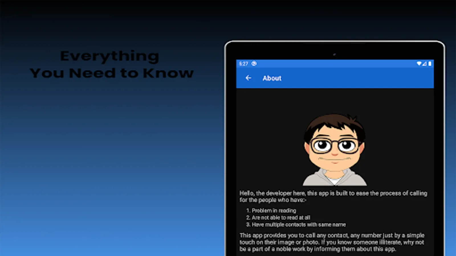 If you know someone illiterate who is facing problems with calling, why not be a part of a noble work by helping him with this app.