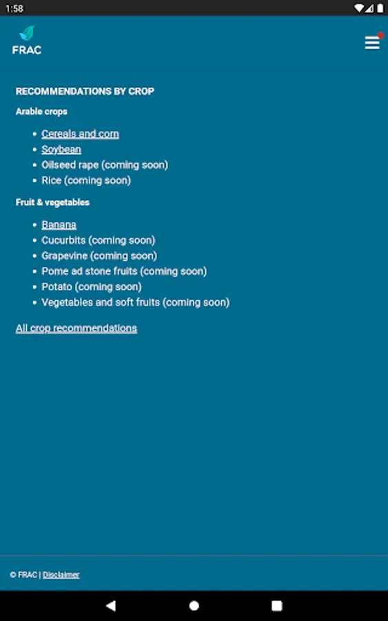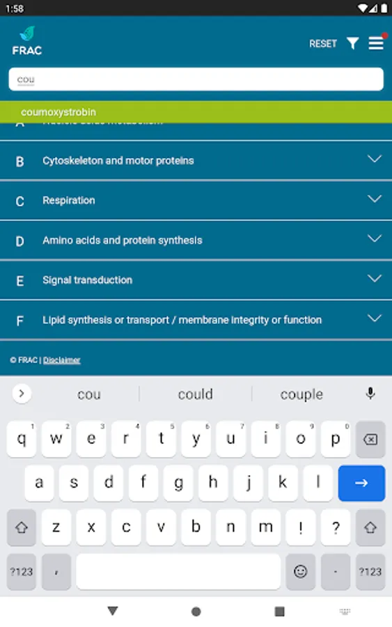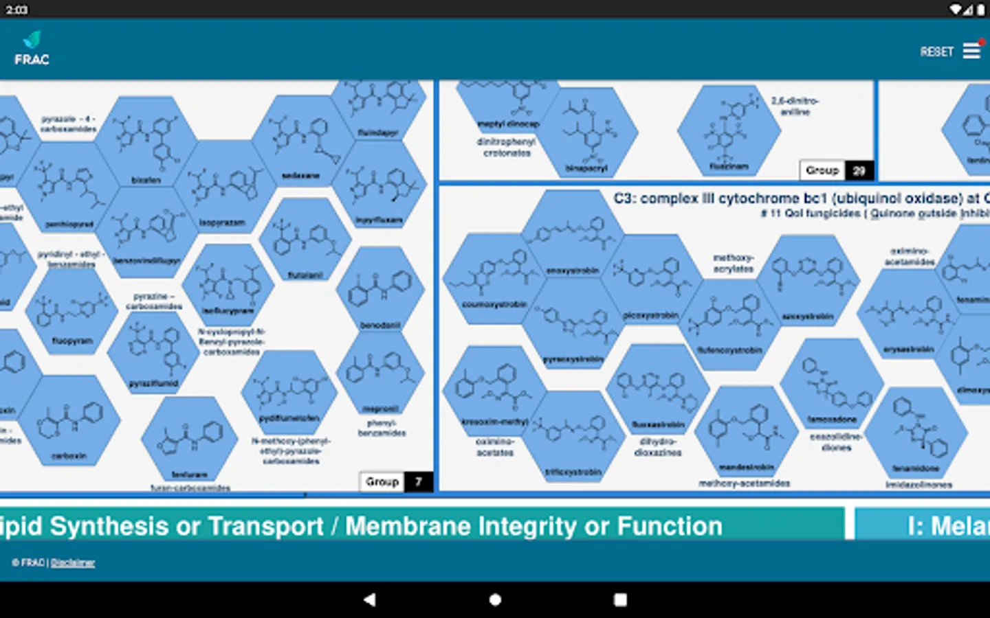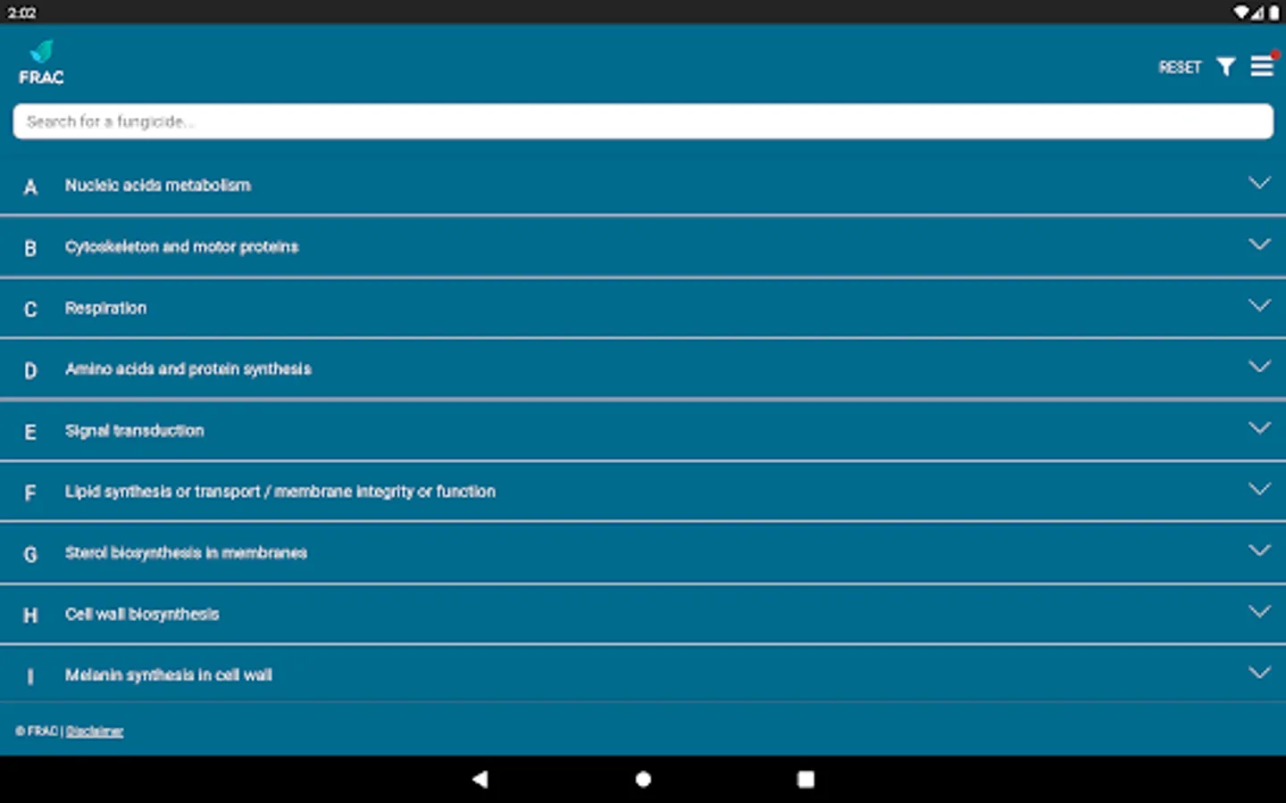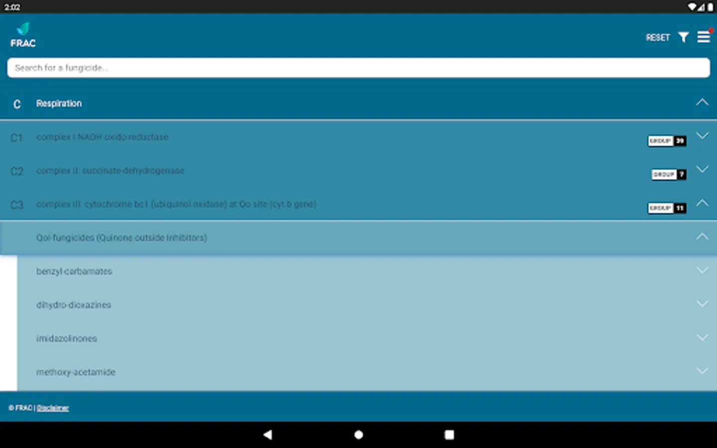 The FRAC MoA application allows you to search which active ingredients belong to which mode of action group. Tipping on the actives name provides a broad overview about the resistance situation and the need for fungicide resistance management.