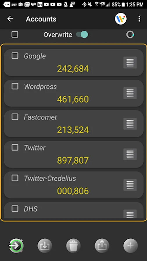 If "Overwrite" checkbox is checked, an existing account will be updated with a new secret or a new one will be created if an account with this name didn't exist.