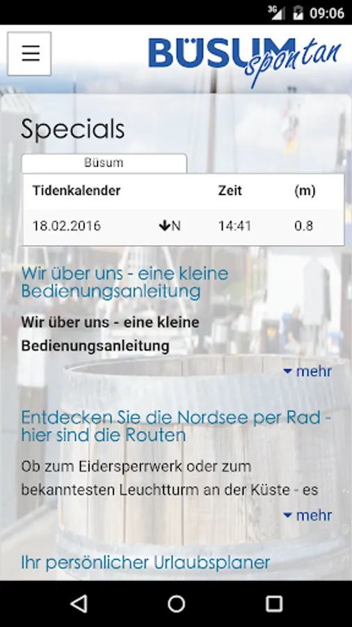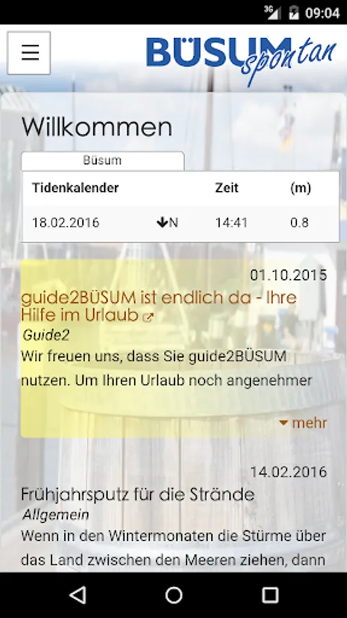 • continuously updated information on the tides (tides / high and low tide), news from the region and trivia