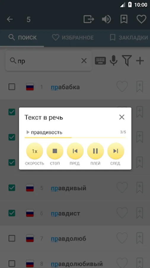 • You can add marked words to the list of favorites.