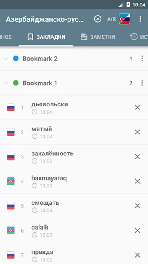 • Bookmark - Bəyəndiyiniz sözü lüğətdə müxtəlif qruplarda saxlaya bilərsiniz.