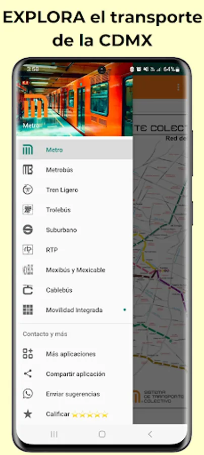 It is a simple application that allows you to open the maps of the public transport network without the need for an Internet connection and shows you all the lines of the transport system in Mexico City; such as the Metro, Metrobús, Light Train, Trolleybus, among others.
