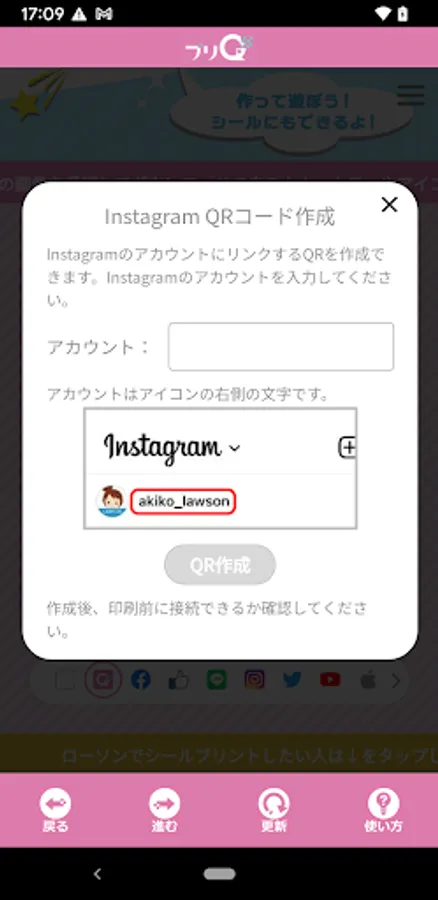 An application that allows you to create an original QR code and print it at Lawson FamilyMart.