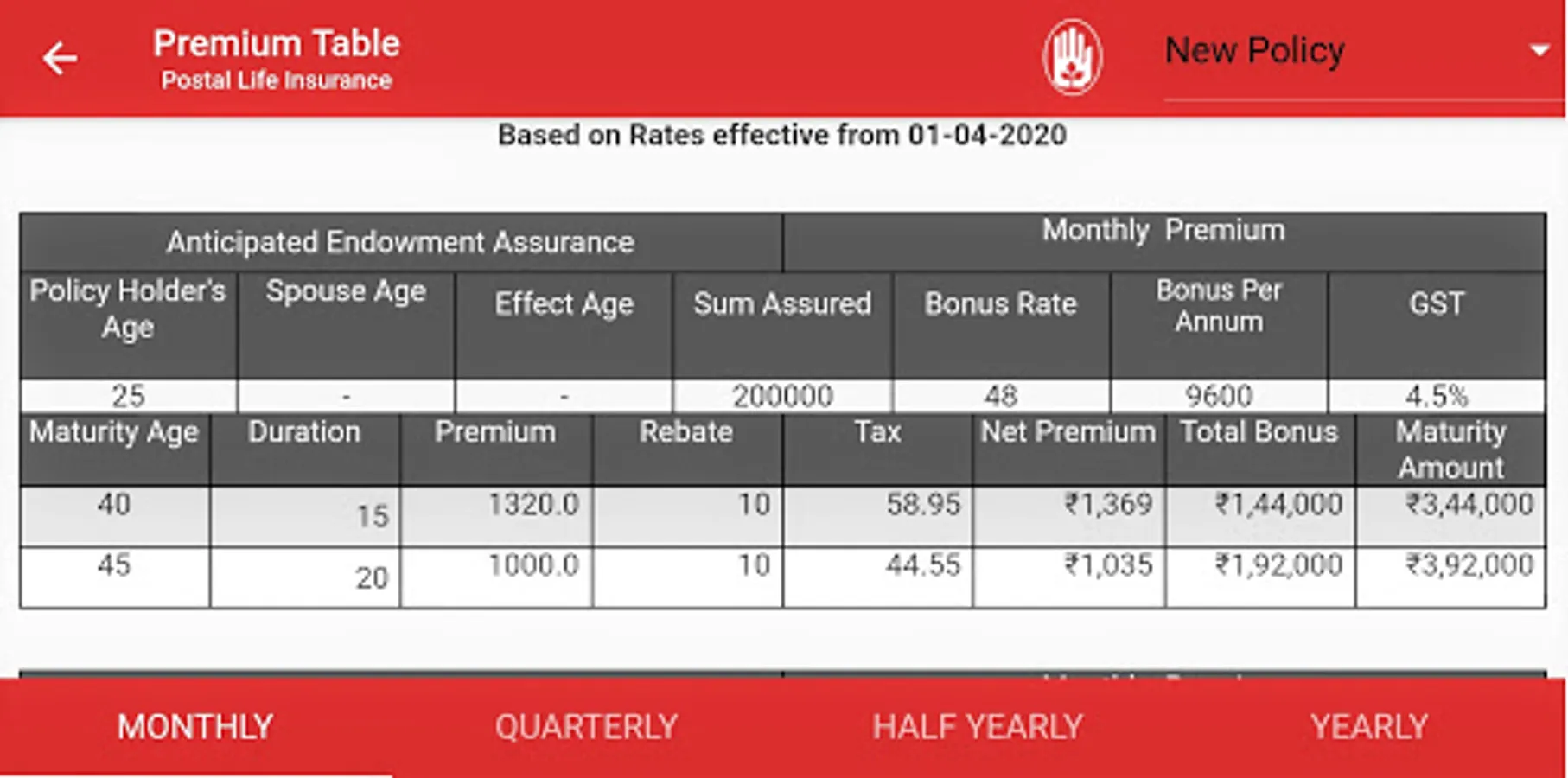 The Department is offering various types of Life Insurance Policies through Postal Life Insurance and Rural Postal Life Insurance. The users can check the premium payable for all the eligible types of Postal /Rural Postal Life insurance Policies on the basis of the input entered.