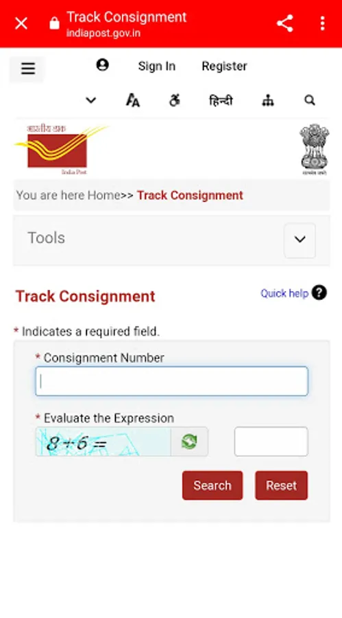 The users can view the status of the above mentioned type of articles by entering the articles number and touching the Track button. The following additional facilities are also available.