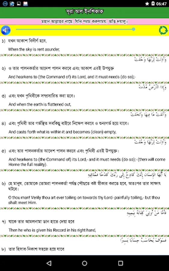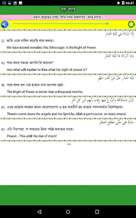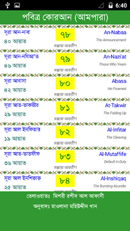 30th Chapter of the Holy QUran consists of 37 Surah. You can get all of those Surah in this application along with Engliash and Bangla meaning. Listed surah are as follows-
