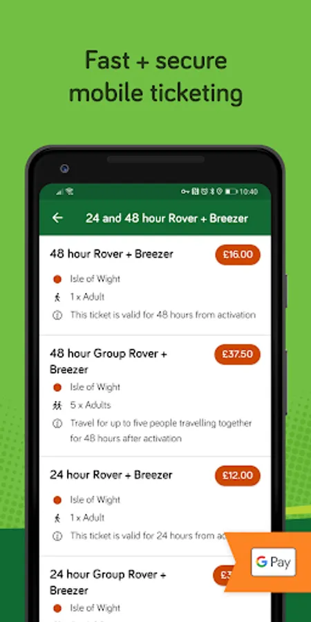 Mobile Tickets Purchase mobile tickets securely with a debit/credit card or with Google Pay and show the driver when boarding - no more searching for cash!
