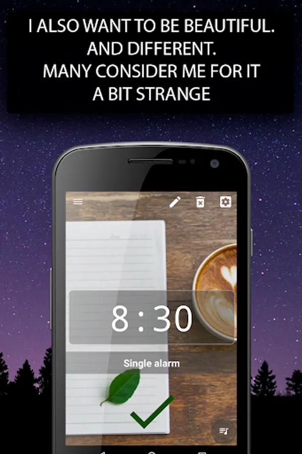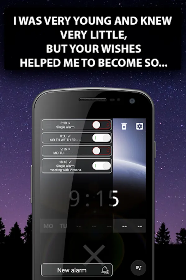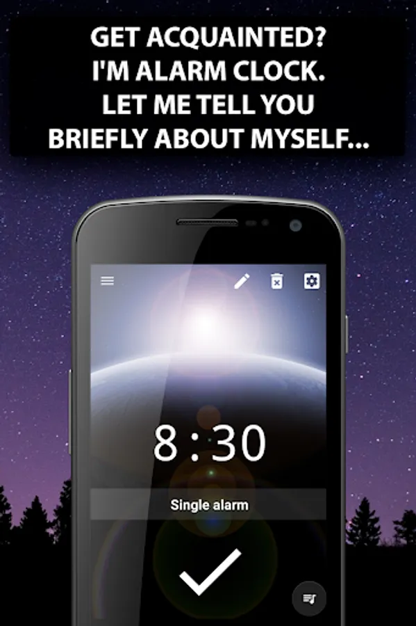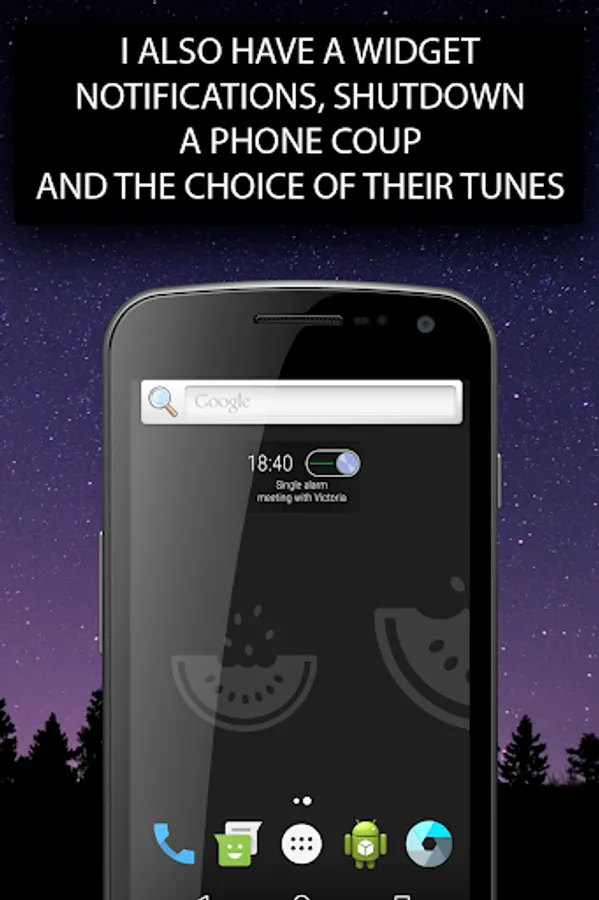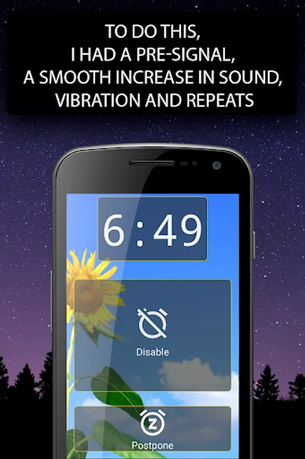 Alarm clock without ads, in which I tried to combine the simplicity of the interface, ease of configuration and pleasant melodies for waking up. Waking softly, without stress is the main task of my alarm clock. I tried to make it so that in the morning I did not want to break the phone against the wall. It turned out or not - to judge you, dear users.