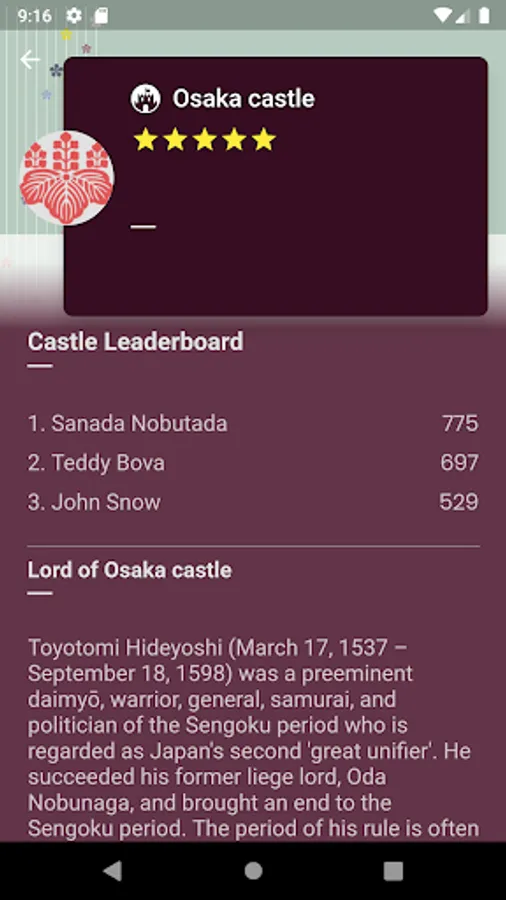 An adventure takes you back to the Sengoku era with all unforgettable memories... the castles, the greatest Samurai warriors, and their honorable family crests.