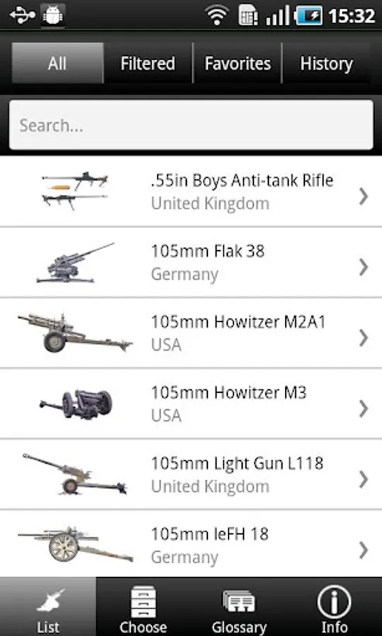 Each artillery piece featured is illustrated by a full-colour artwork and accompanied by a detailed specifications table giving the country of origin and technical details of the weapon, including where appropriate the calibre, elevation, muzzle velocity, traverse and range, all measurements being provided in imperial and metric. Each entry also contains a piece of text summarizing the weapon’s development and service history.