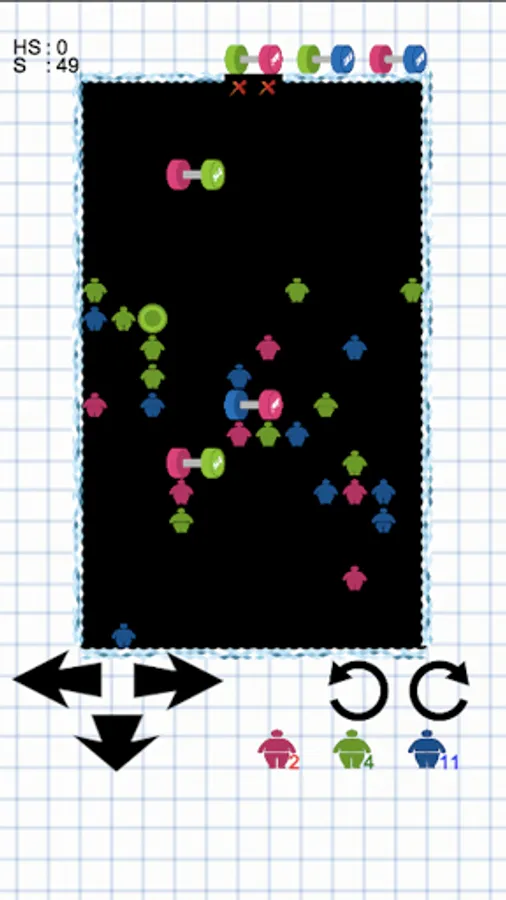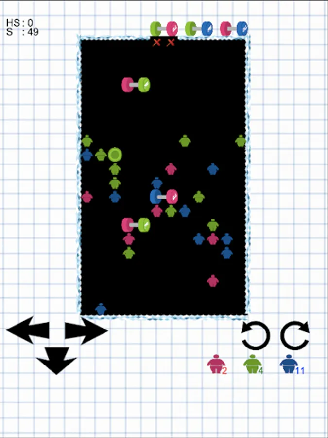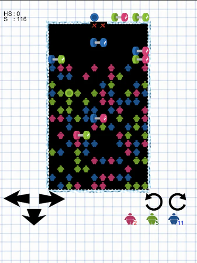 2. You can control your brick while other bricks are falling. Therefore, you can get underneath and erase other bricks (dumbbells) while they are falling. 3.