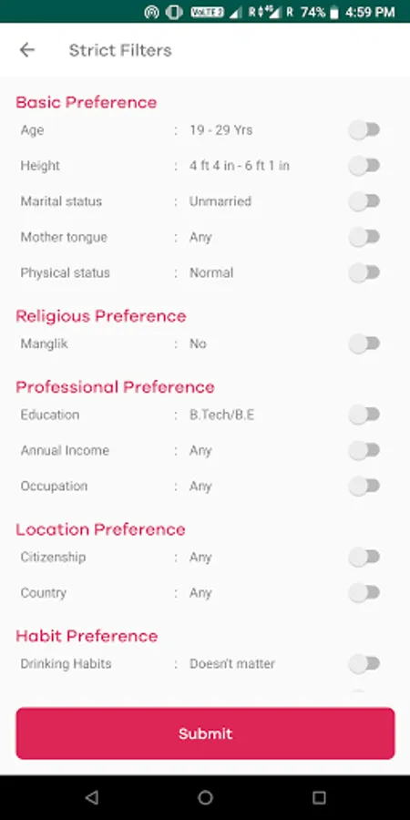 -> Set up partner preferences based on age, location, education, community, and many other personal and professional choices.