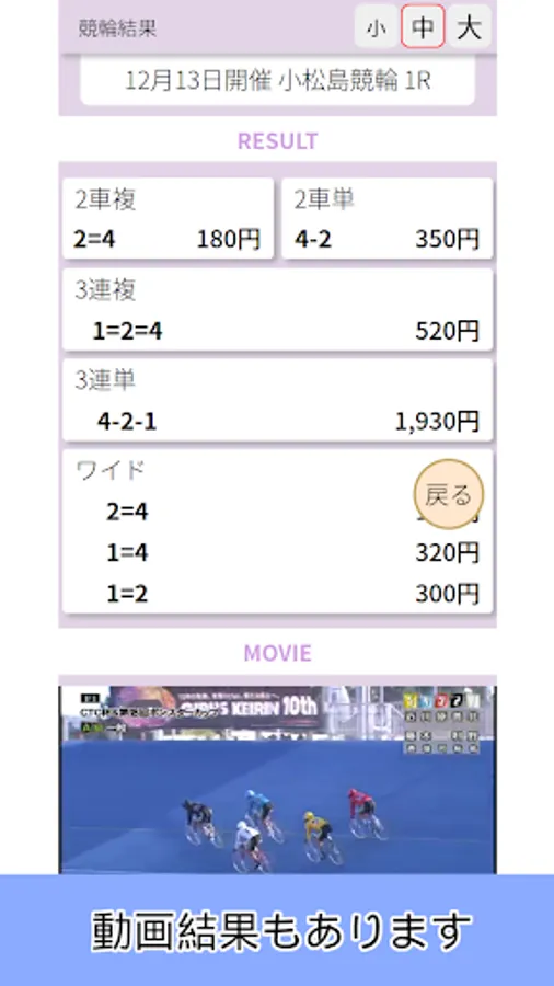 It is an application that provides the results of the Japanese public competition "Keirin".