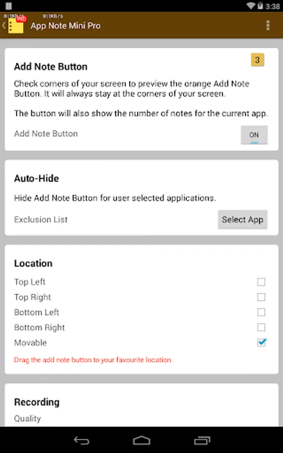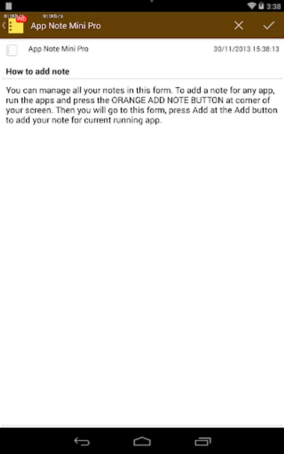 App Note Mini help your to create and organize your notes for different apps. You can also use it as a to do list for different applications. You can type your notes, or record a voice notes. It provide a add note button, which is always appear at the corner of your phone, so that you can add notes for different apps easily.