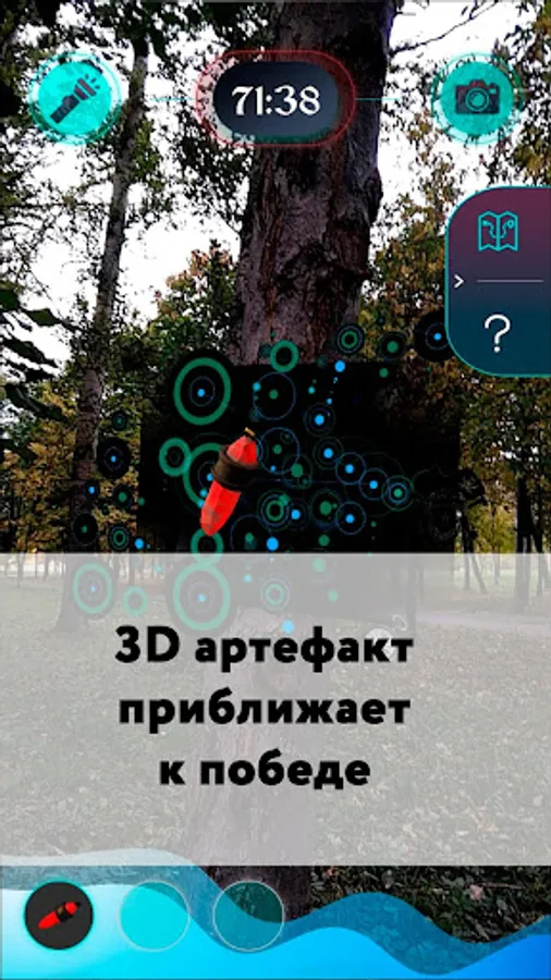 When pointing the application to the quest location - a special plate, in augmented reality a test or artifact arises.