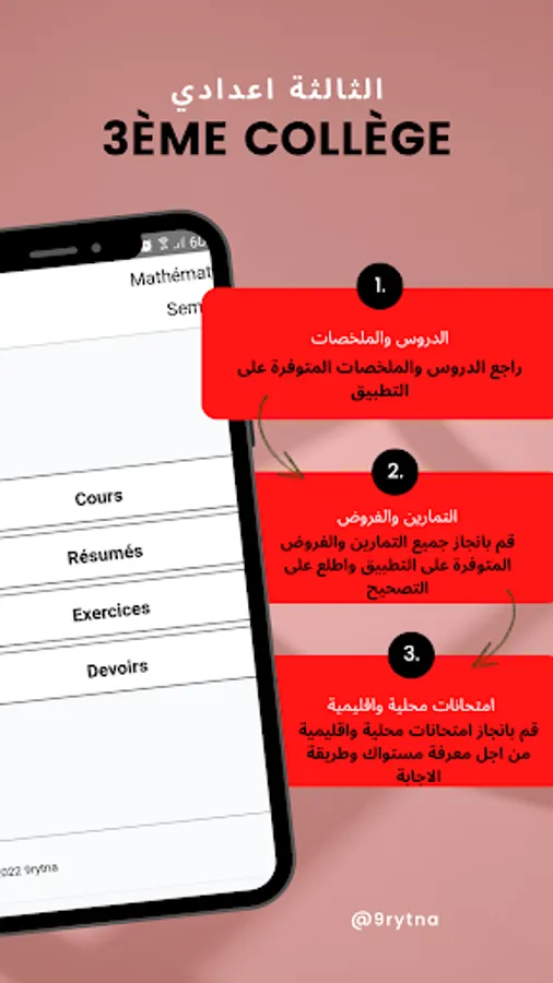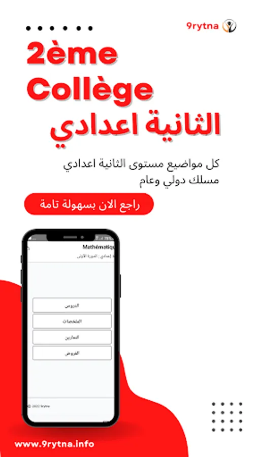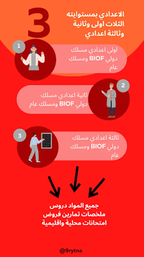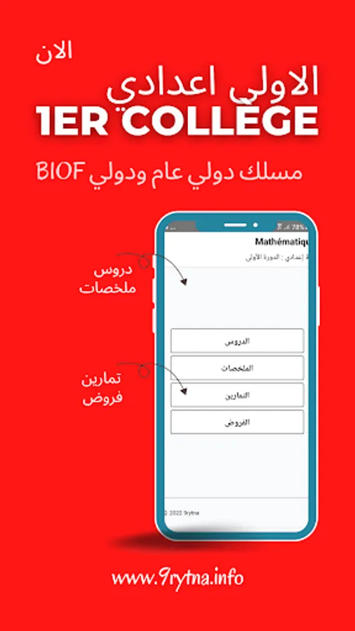 The application contains Courses, summaries, exercises, assignments, local and regional exams for all subjects.