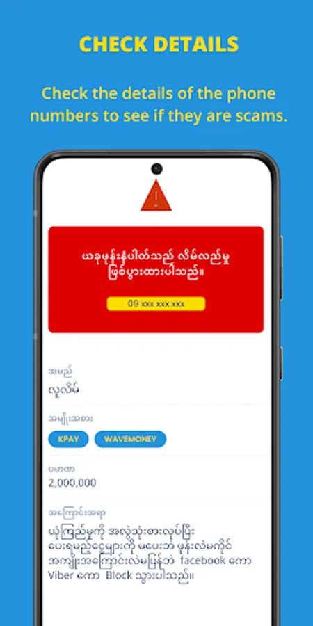 Whenever you transfer money to a third party you don't recognize, such as an online purchase, be careful not to be defrauded. With the KWIN app, you can verify the Wavemoney or Kpay number of the suspect.