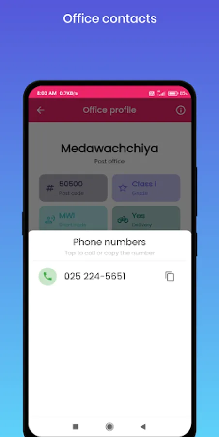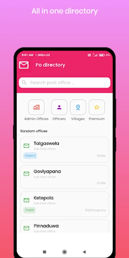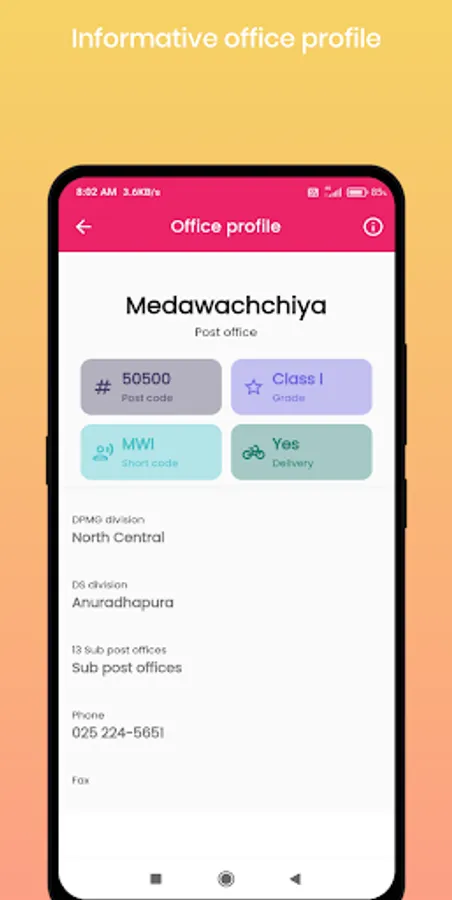 This app includes 3400++ post offices / sub post offices & admin offices information. if you found any incorrect details , please report is through "Report Button" .