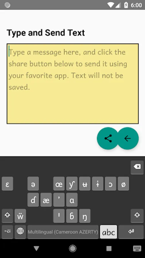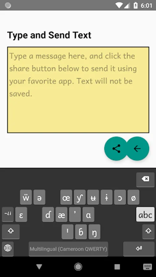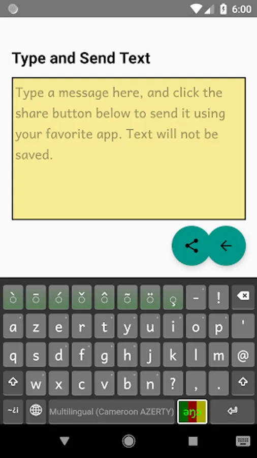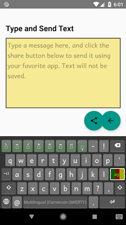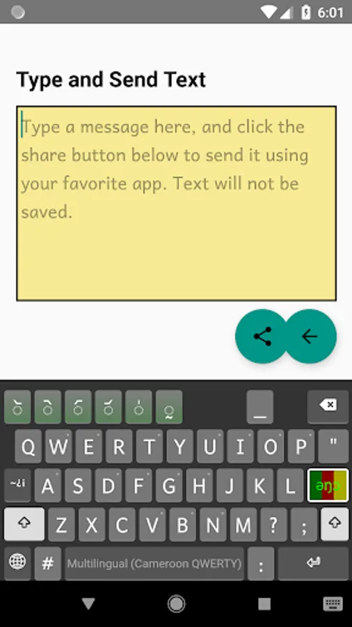 The Cameroon Keyboard is a virtual keyboard maintained by SIL Cameroon. It allows the user to type in any language of Cameroon that follows the GACL (General Alphabet of Cameroonian Languages). You can now send text messages and use social media in your language from your phone or tablet! It has been available on Windows® for nearly a decade, but is now available on Android®!