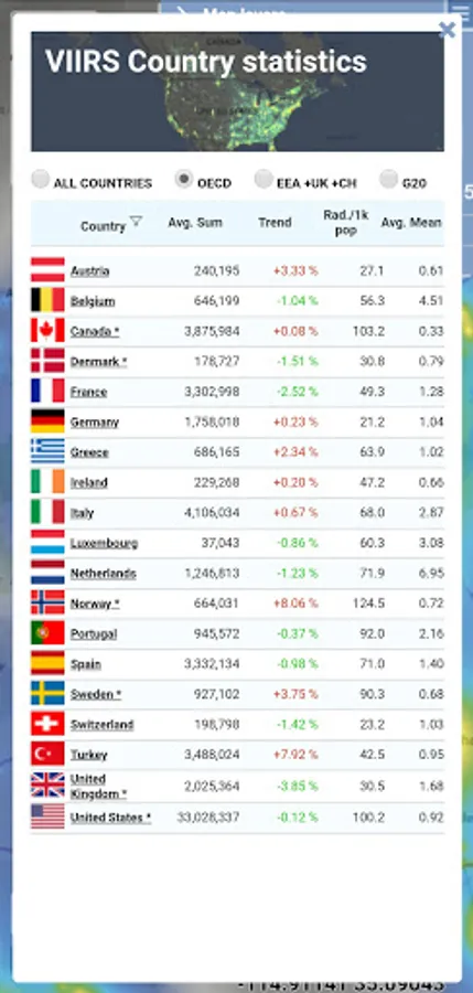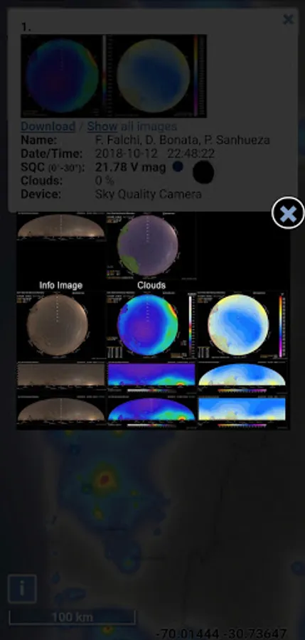 - Get detail radiance and SQM values from layers at a click. For World Atlas 2015, you also get Bortle class estimation.