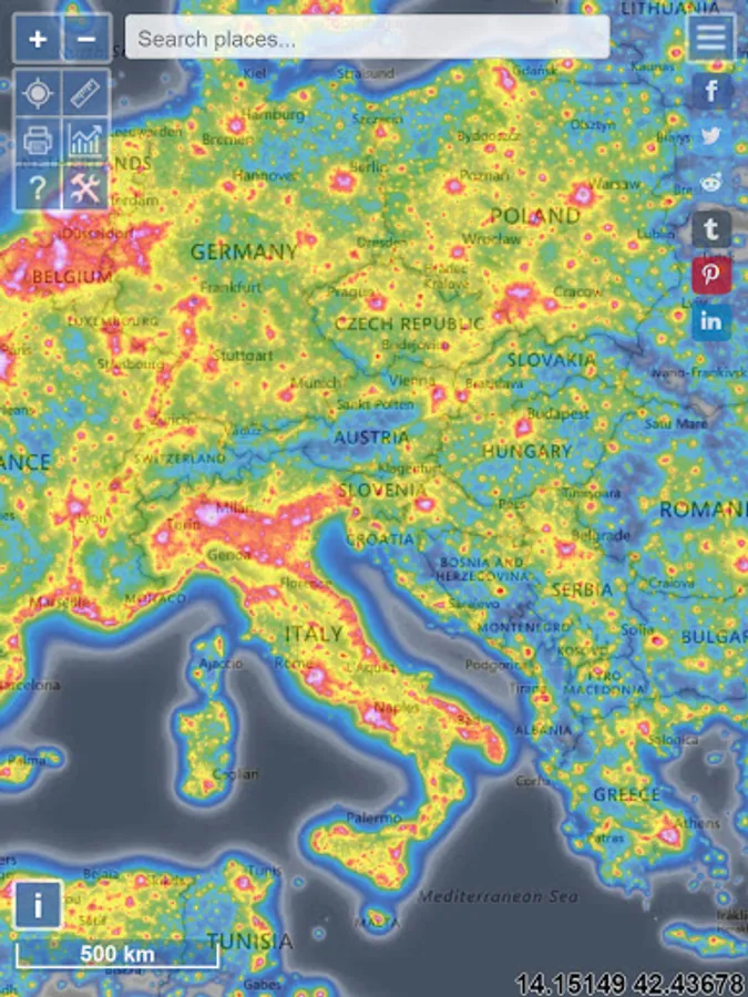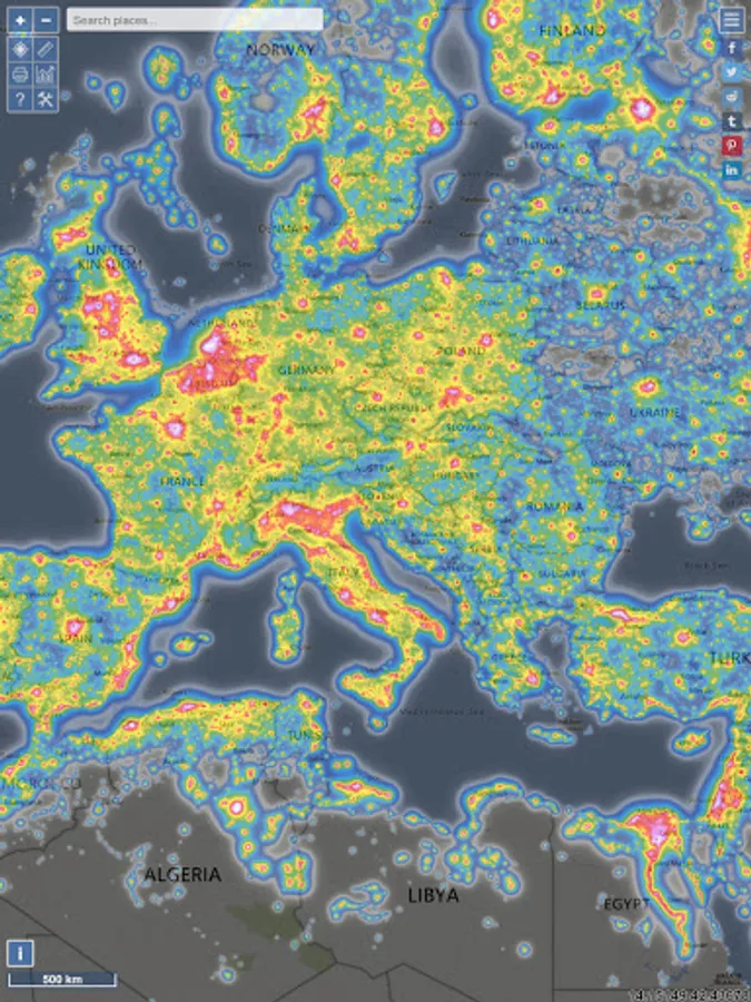 The primary use is to show VIIRS/DMSP data in a friendly manner, but over time it also included some other interesting overlays that concern light pollution like SQM/SQC, World Atlas 2015 zenith brightness, clouds, aurora and IAU observatories. If you have a permanent SQM reader installed you can add it to the map by sending me an e-mail.