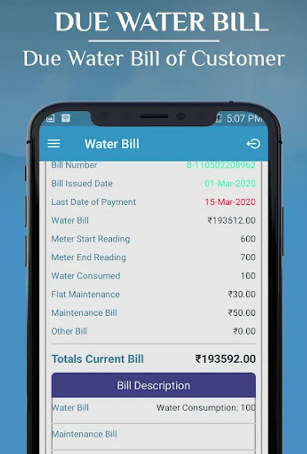 Water Bills App Features: