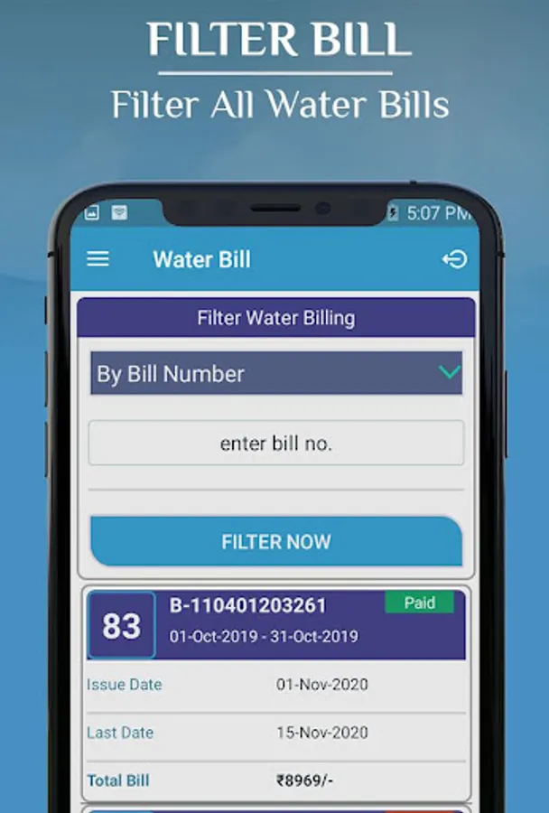 4. Filter Water Bill (By Bill No., Date, Payment Status)
