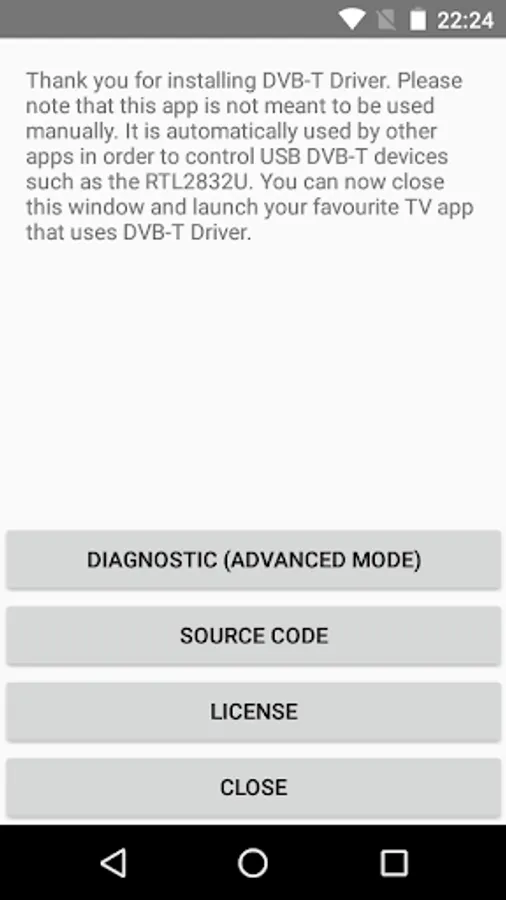 Currently only the "Aerial TV" app supports this driver. Make sure to download and install Aerial TV in order to receive DVB-T/T2 with this driver.
