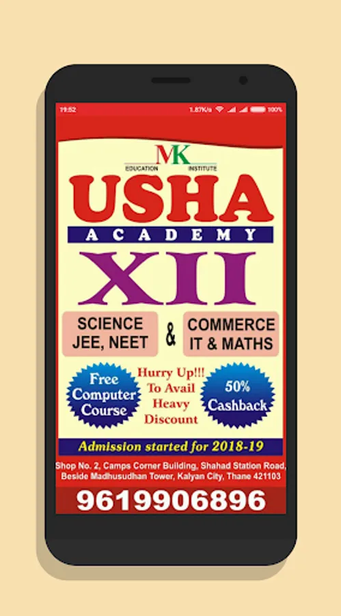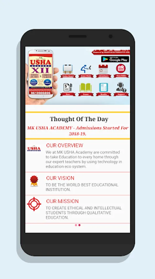 MK Usha Academy Android App Notifies Daily Classes Activities Like Homework,Classwork, Notice,Lecture Timetable etc to Students & Parents.