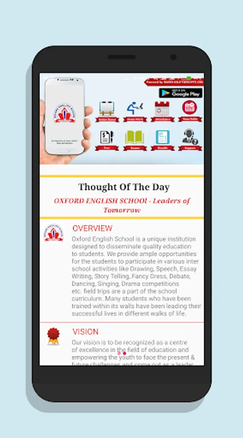 Oxford English School App helps parents stay notified about various activities like homework,notice,timetable etc.