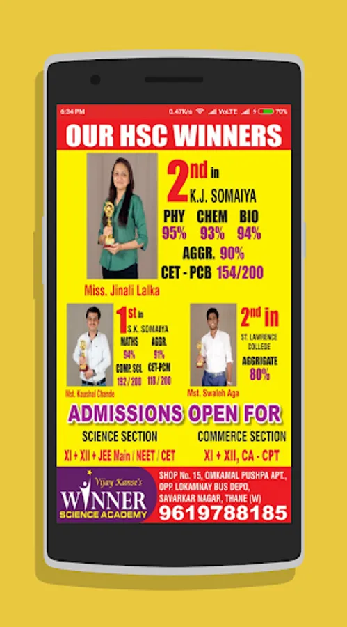 Winner Science Academy Android Application helps students/parents to be connected with classes & get notified about every events like homework,notice,attendance etc.