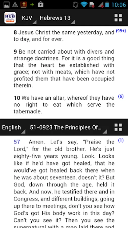 Cross reference from Bible to the Message and vice versa in all available languages.