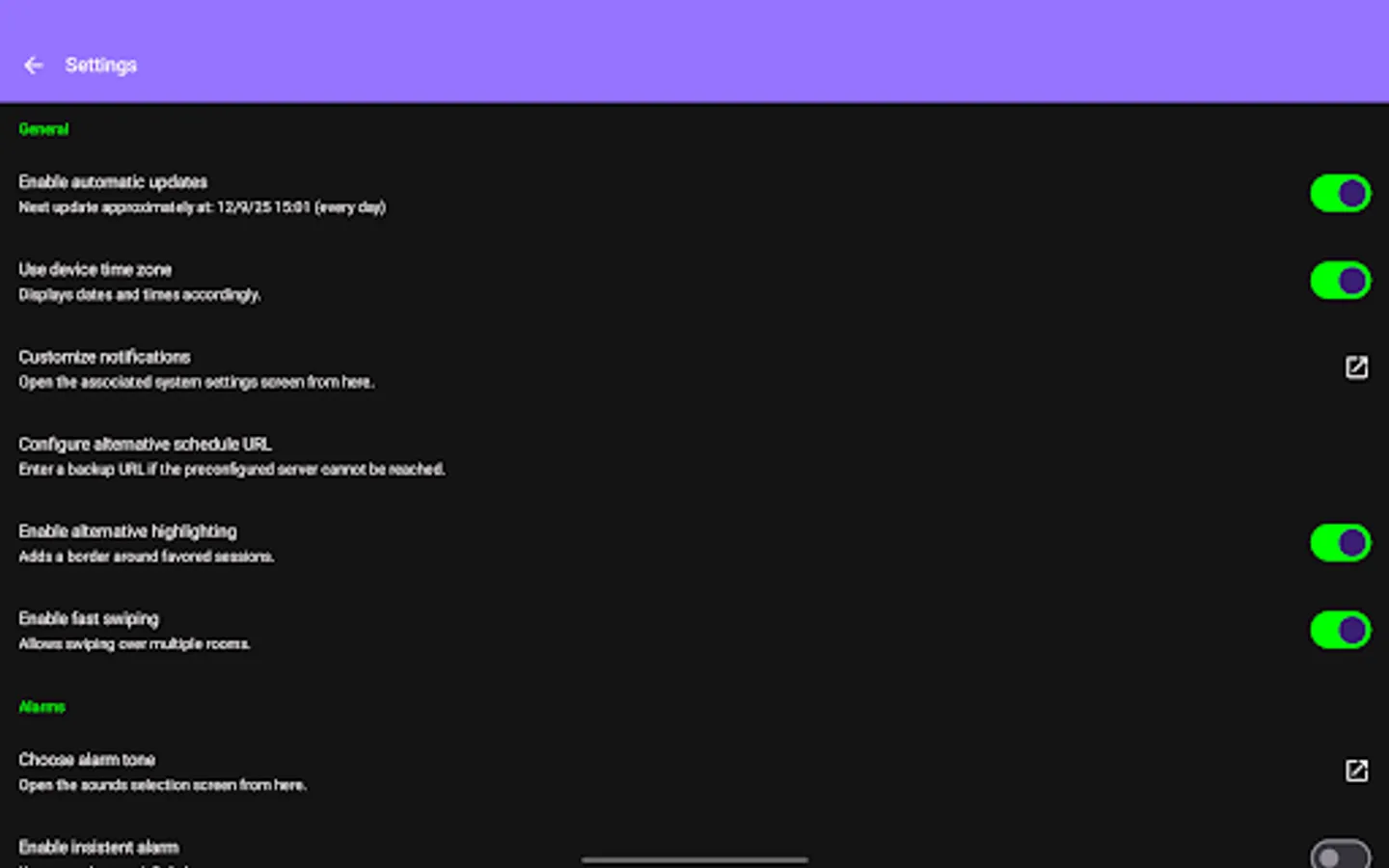 ✓ Read detailed descriptions (speaker names, start time, room name, links, ...) of events