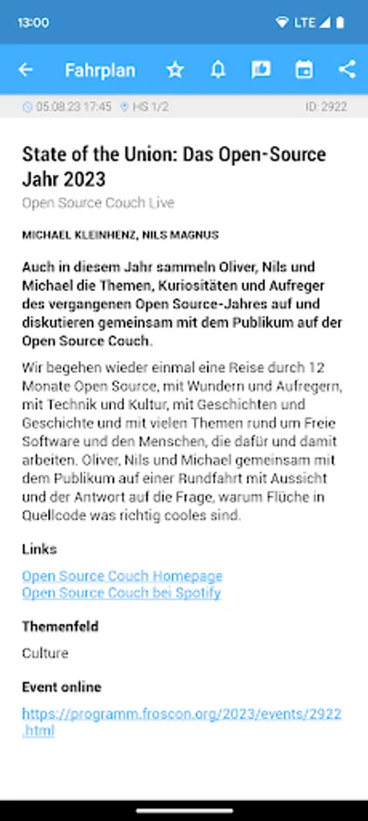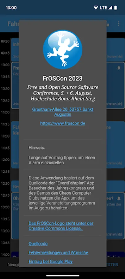 💡 Only the FrOSCon team can answer content-related questions about the program. This app only provides the program items.