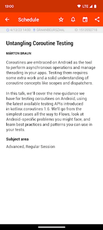 ✓ Read detailed descriptions (speaker names, start time, room name, links, ...) of events