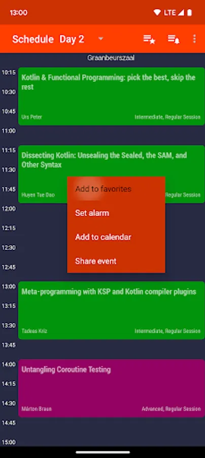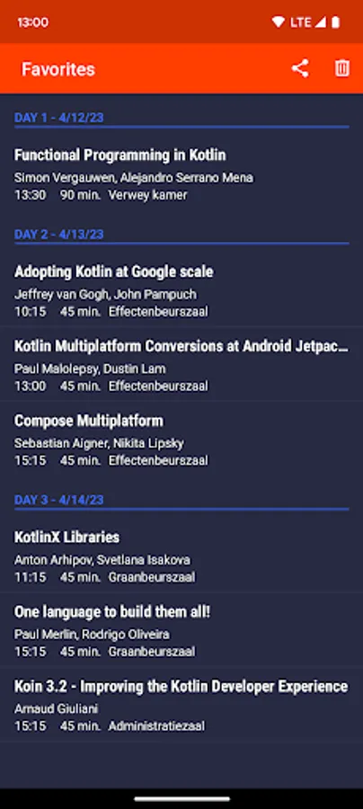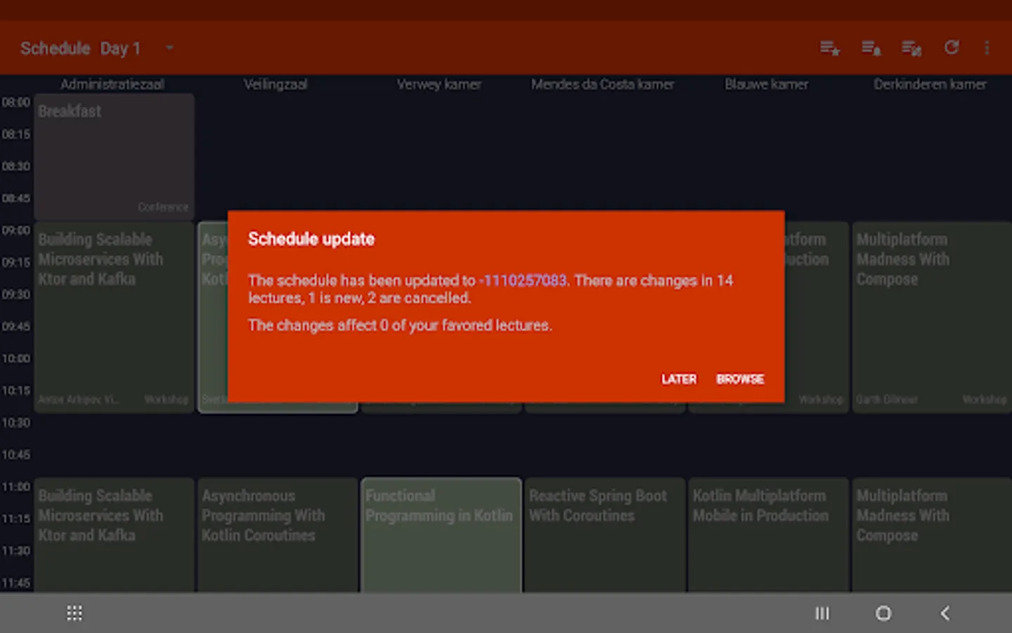 💡 Questions regarding the content can only be answered by the content team of the KotlinConf. This app simply offers a way to consume and personalize the conference schedule.
