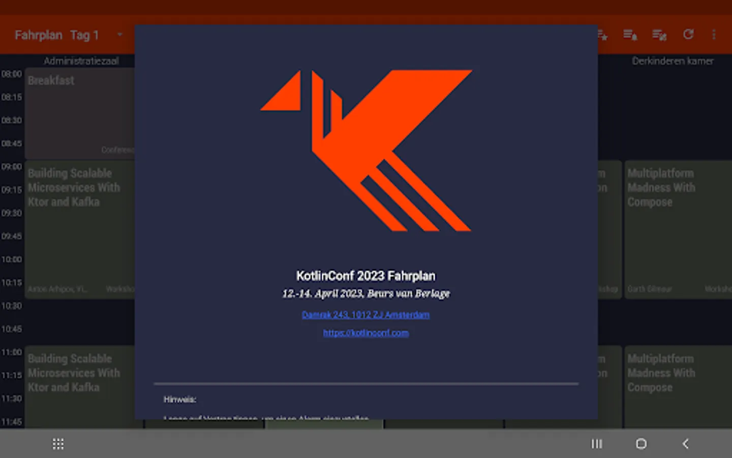 The alternative program app for the KotlinConf at Beurs van Berlage, Amsterdam - April 12-14, 2023