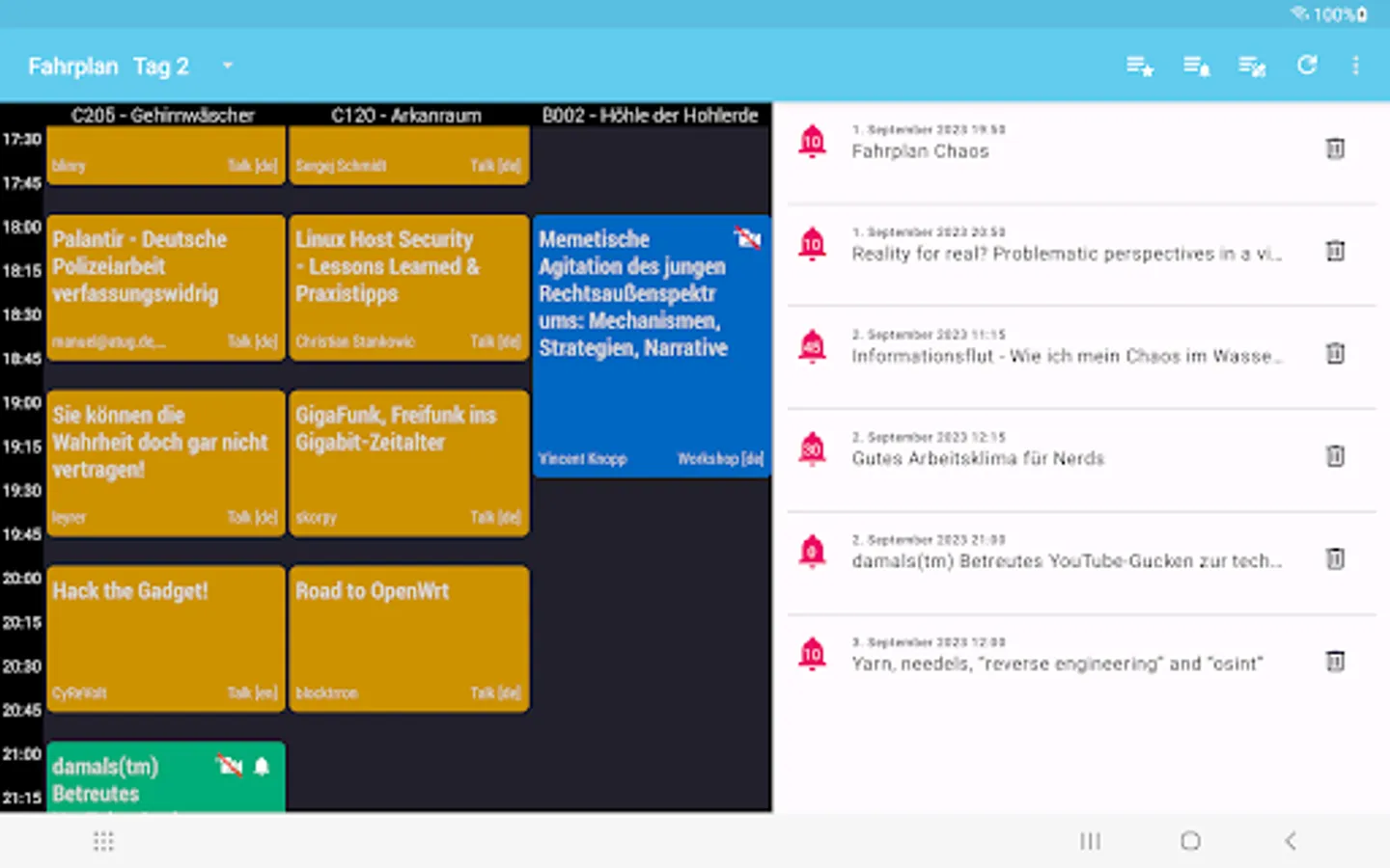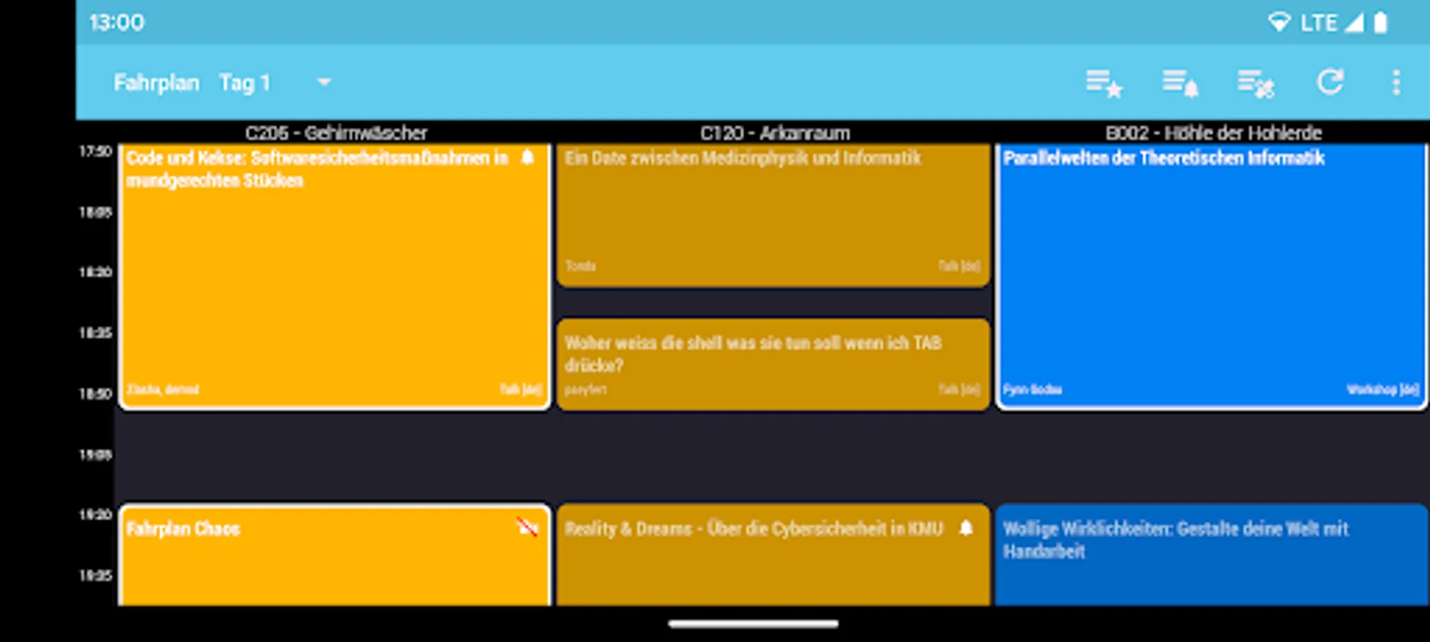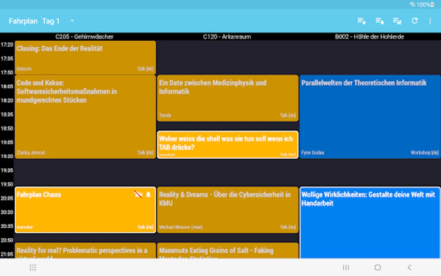 [1] Timetable app - https://play.google.com/store/apps/details?id=info.metadude.android.congress.schedule