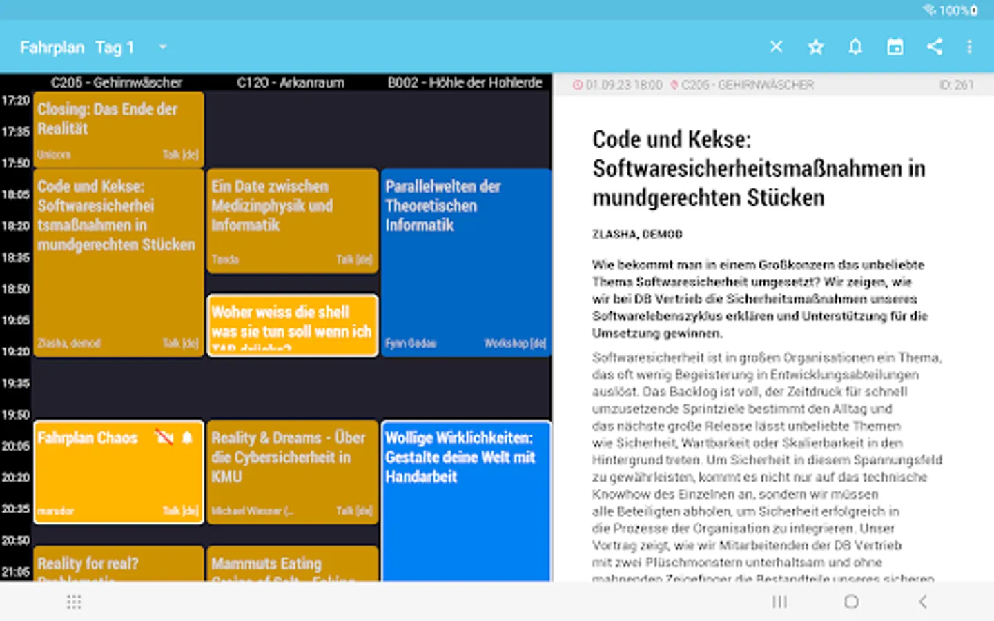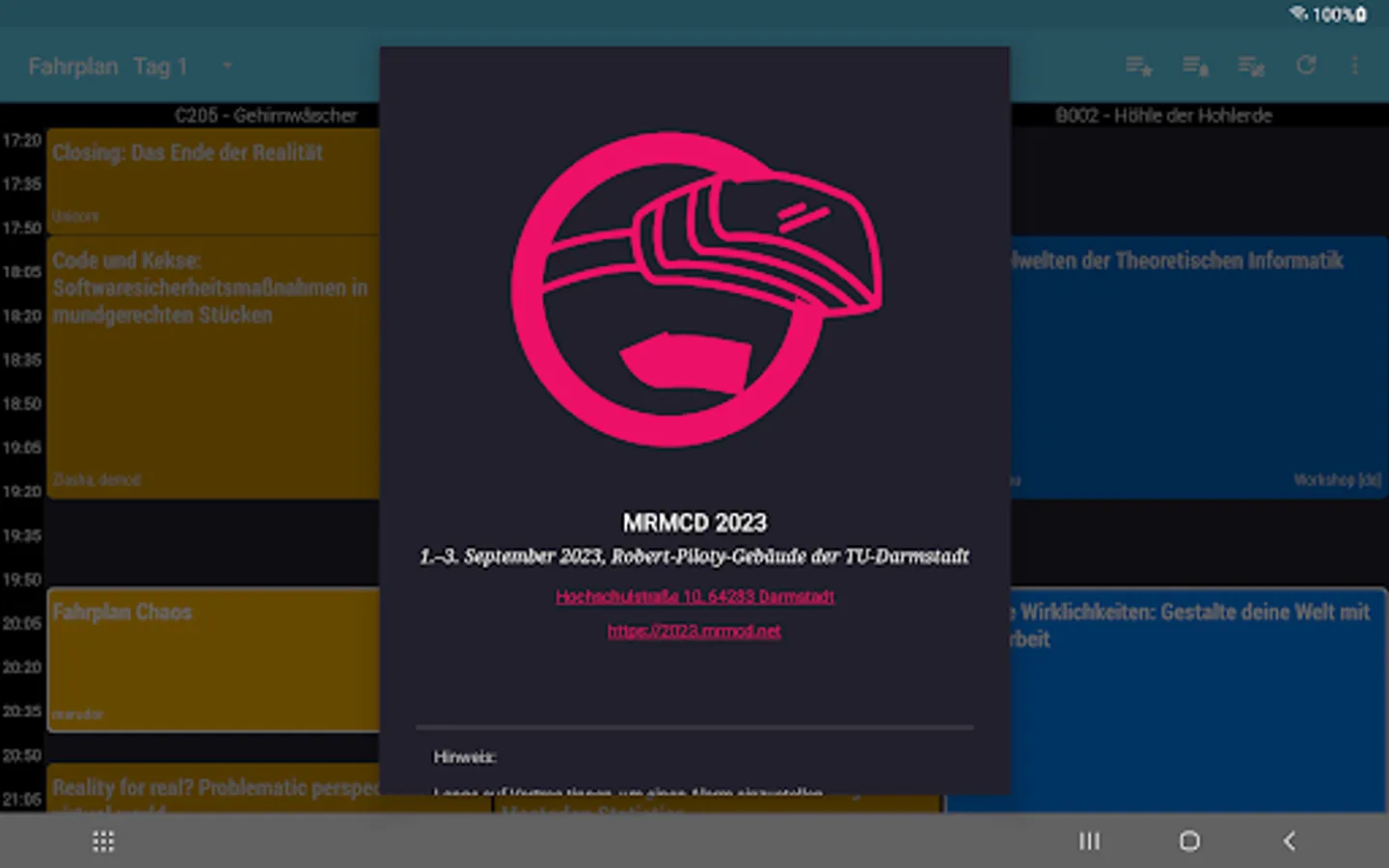 🏆 The app is based on the EventFahrplan-App [1] for the Congress of the Chaos Computer Club. The source code of the application can be found on GitHub [2].