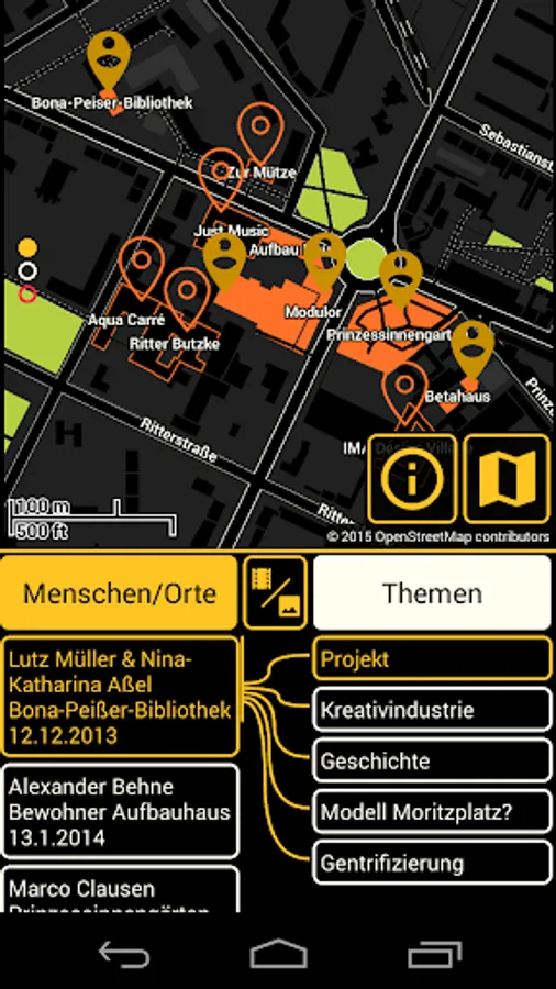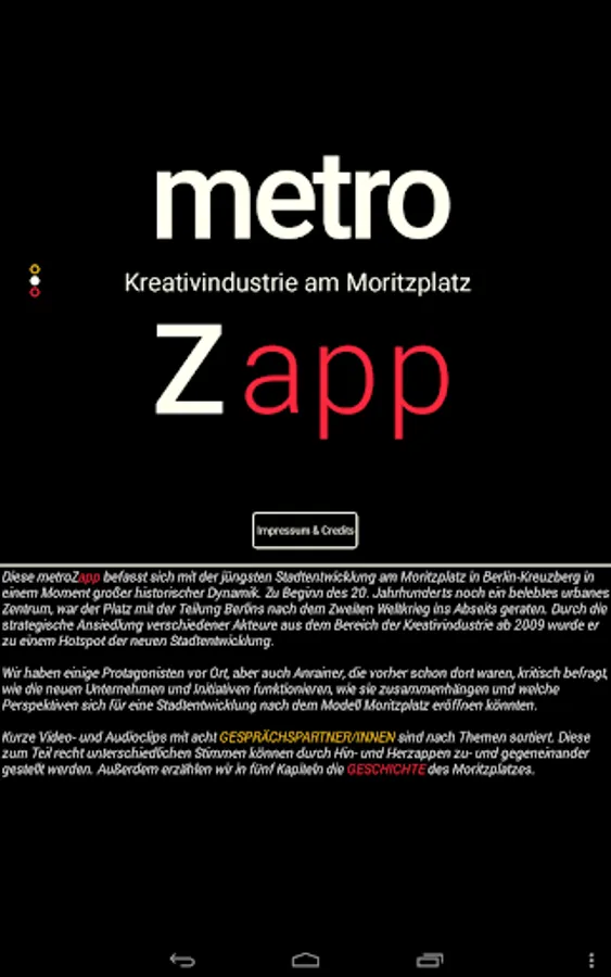 We have some of the protagonists on the spot, but also residents who had previously been there, critically questioned how the new companies and initiatives work, how they are related and what prospects could open up for a city development after the model Moritzplatz. Short video and audio clips with eight interlocutor / inside are sorted by theme. This sometimes quite different voices may fall by way heart Appen and are set against each other. We also tell in five chapters the story of Moritz Square.