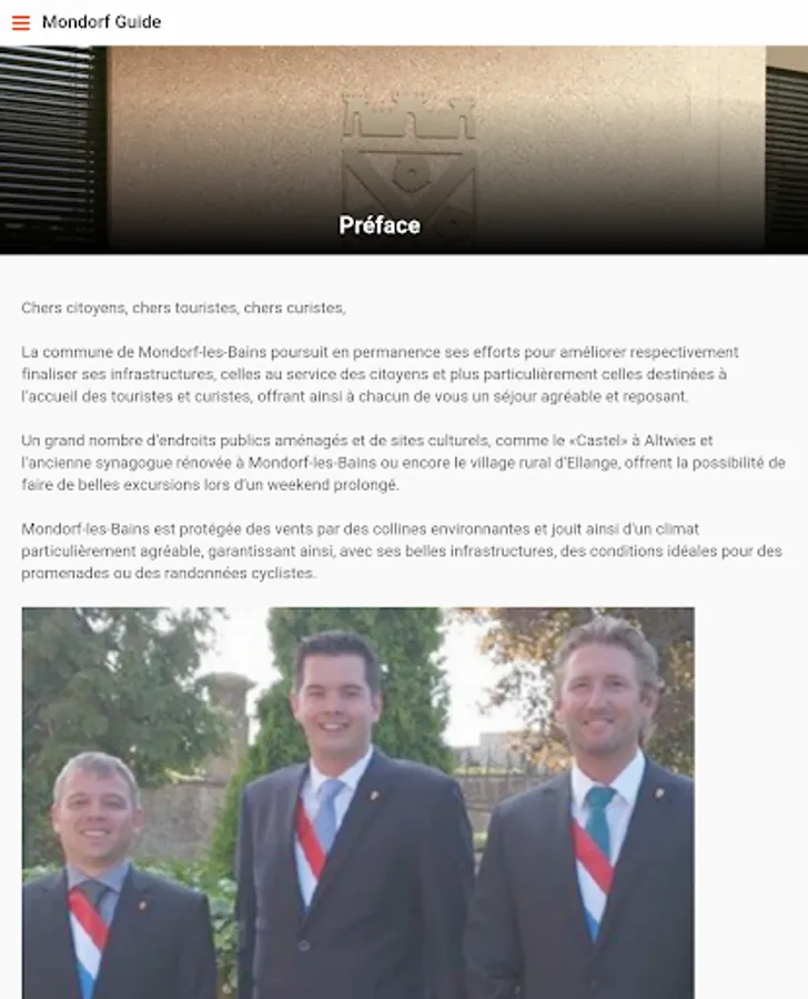 The tourist office of Mondorf presents the digital version of the tourist guide of the city of Mondorf :