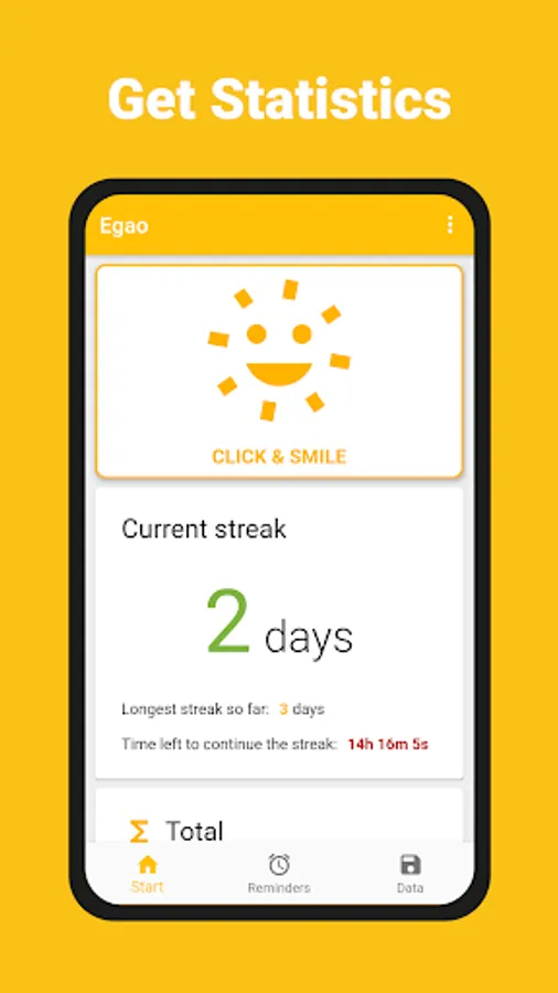 Egao supports you in reaping these benefits of smiling. It reminds you to smile and tracks your extra smiles.