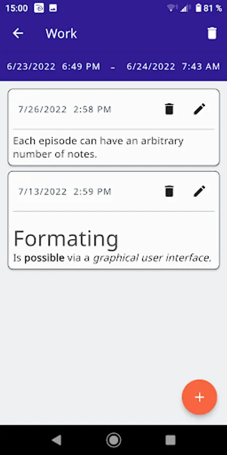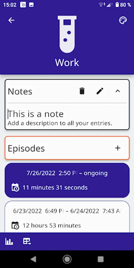 * Detailed Episode Tracking: Track episodes of arbitrary length and add notes to each session to keep a record of what you did.