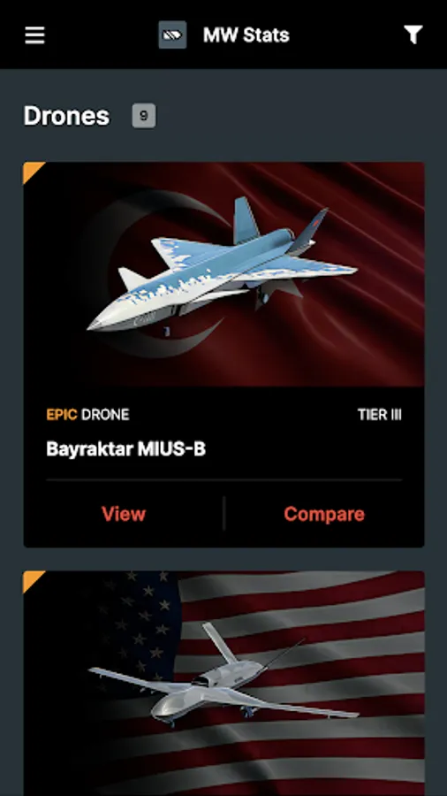– Aircraft statistics: Helicopters, fighters, strike fighters, drones, and bombers