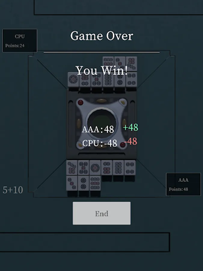 For instance, if you play a 9 and your opponent plays a 1, you win the round and gain 9+1=10 points.
