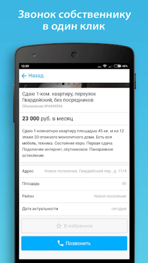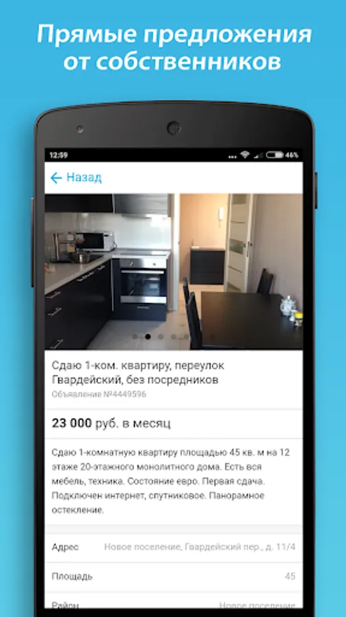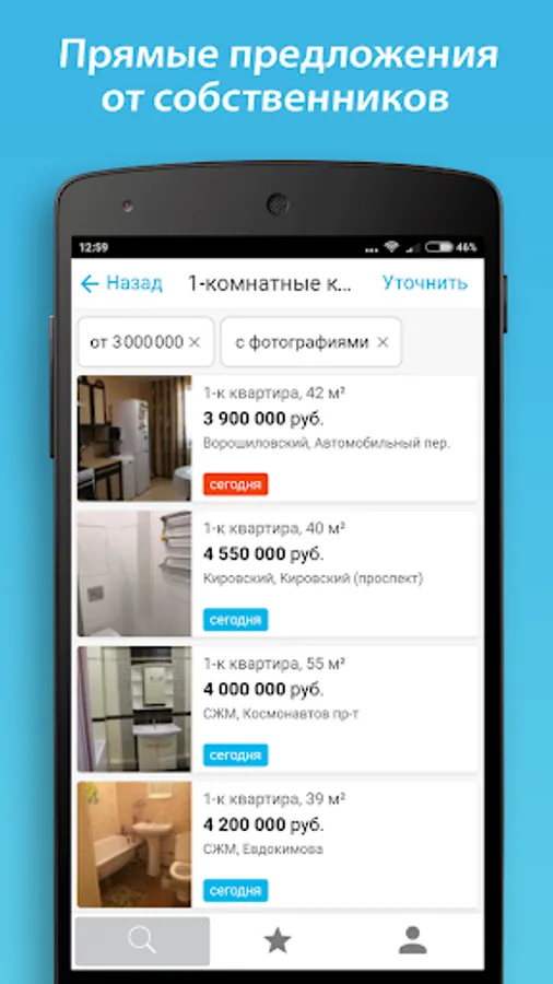 Using the application, you will be able to quickly and easily search for any property directly from the owners: rent and sale of apartments, rooms,